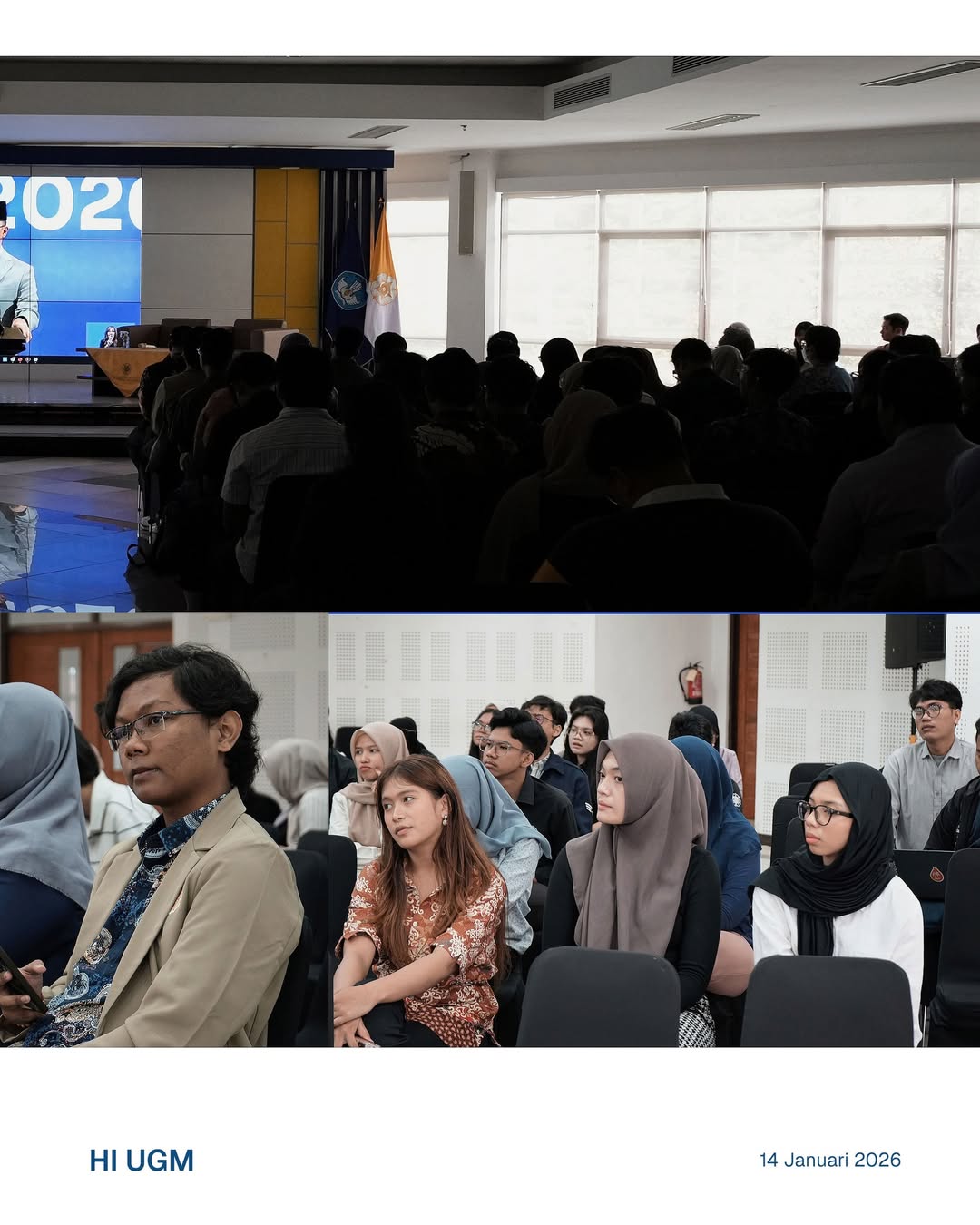 Yogyakarta, 14 Januari 2026─Departemen Ilmu Hubungan Internasional (DIHI) Fakultas Ilmu Sosial dan Ilmu Politik (FISIPOL) UGM bekerja sama dengan Kementerian Luar Negeri Republik Indonesia (Kemenlu) menyelenggarakan kegiatan bertajuk “Nonton Bareng Pernyataan Pers Tahunan Menteri Luar Negeri (PPTM) 2026” pada Rabu (14/01) di Auditorium Mandiri Fisipol UGM. DIHI UGM merupakan salah satu dari sembilan mitra universitas yang terpilih sebagai lokasi penyelenggaraan nonton bareng PPTM 2026 yang diselenggarakan di Ruang Nusantara, Kemenlu RI, dan disiarkan secara langsung melalui kanal YouTube MoFA Indonesia.