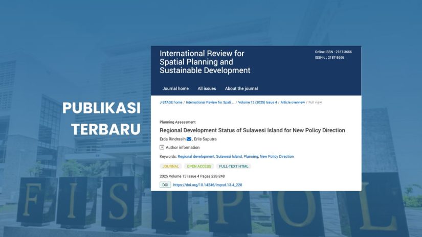 Dosen Fakultas Ilmu Sosial dan Ilmu Politik Universitas Gadjah Mada (FISIPOL UGM), Dr. Erda Rindrasih, kembali memperkuat kontribusi akademik Indonesia melalui publikasi terbarunya berjudul “Regional Development Status of Sulawesi Island for New Policy Direction.” Artikel tersebut dimuat di International Review for Spatial Planning and Sustainable Development, jurnal internasional bereputasi Q2.