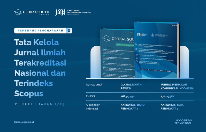 Yogyakarta, 24 Oktober 2025─Dua jurnal ilmiah di bawah Fakultas Ilmu Sosial dan Ilmu Politik (FISIPOL) Universitas Gadjah Mada (UGM) ditetapkan sebagai Pemenang Penghargaan Tata Kelola Jurnal Ilmiah Terakreditasi Nasional dan Terindeks Scopus Periode I Tahun 2025. Dua jurnal yang menerima penghargaan tersebut adalah Global South Review, yang telah mencapai akreditasi baru dengan peringkat 2, dan Jurnal Media dan Komunikasi Indonesia, yang telah meningkatkan akreditasinya menjadi peringkat 3. Pencapaian ini tidak hanya mencerminkan kualitas penelitian yang dipublikasikan dalam jurnal-jurnal ini, tetapi juga menekankan pentingnya kontribusi akademis terhadap pembangunan berkelanjutan.