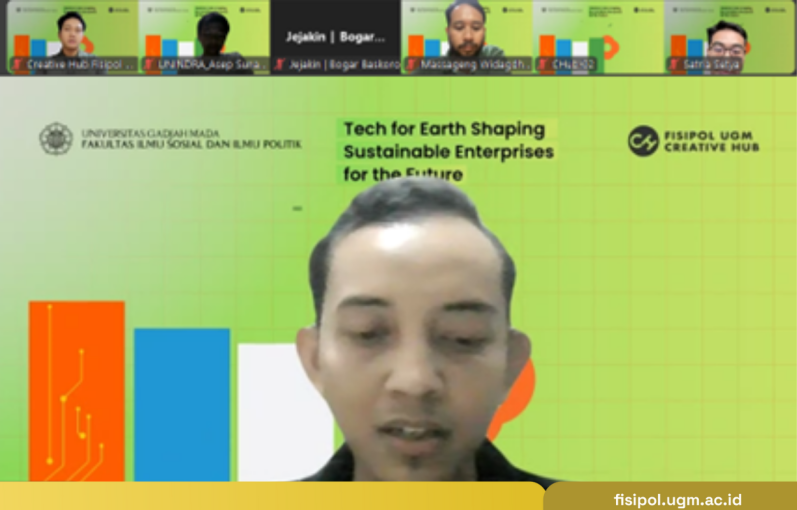 Yogyakarta, 22 Agustus 2025—Fisipol Creative Hub menggelar webinar yang bertajuk “Tech for Shaping Sustainable Enterprises for The Future”. Webinar ini sekaligus menjadi pembuka dari rangkaian acara Program Talent Pitching batch #9. Diskusi dalam webinar ini memberikan edukasi mengenai inovasi dalam menciptakan kewirausahaan yang berkelanjutan di masa yang akan datang. Dalam webinar ini mengundang dua narasumber, yaitu Bogar Baskoro (Partnership Lead, Jejakin) dan Ahmad Zaini Pratama (Program Specialist, Ecoxyztem).
