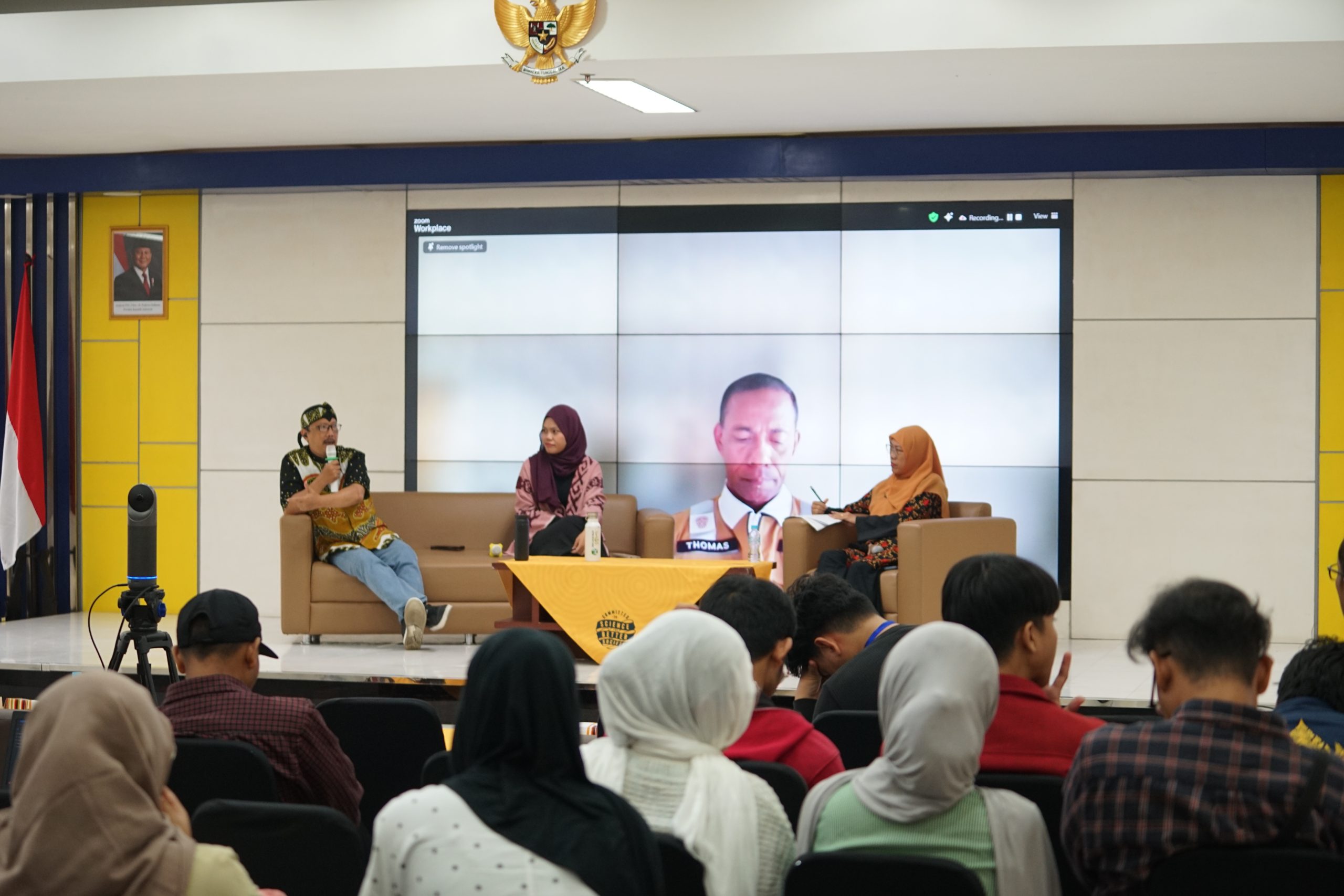 The event featured three speakers: Dr. Thomas Umbu Pati Tena Bolodadi, M.Sc. (Deputy for Development Control of the New Capital City Authority), Erwan Widyarto (Secretary of the DIY Waste Bank Association), and Rifka Agnes, S.Pd. (Chair of KOPHI Yogyakarta). Moderated by Nur Azizah, S.I.P., M.Sc. as moderator.