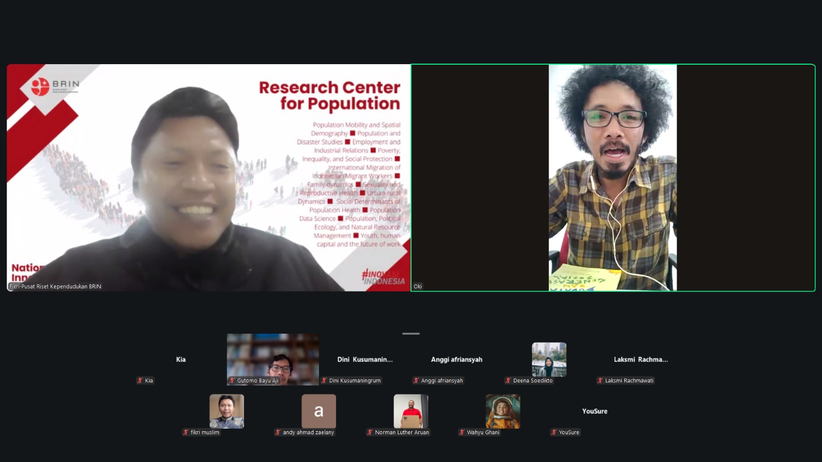 The discussion featured the author and Director of YouSure, Oki Rahadianto Sutopo (Lecturer at the Department of Sociology, FISIPOL UGM), and Gutomo Bayu Aji (Researcher at BRIN’s Population Research Center) as speakers. The session was moderated by Fikri Muslim, also a researcher at BRIN.