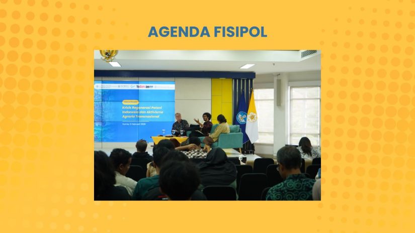 Fakultas Ilmu Sosial dan Ilmu Politik (FISIPOL) Universitas Gadjah Mada (UGM) melalui Social Research Centre Departemen Sosiologi menyelenggarakan Diskusi Publik dan Peluncuran Buku Seri Kajian Petani dan Perubahan Agraria bertajuk “Krisis Regenerasi Petani Indonesia dan Aktivisme Agraria Transnasional” pada hari ini, Kamis (5/2) di Auditorium Fisipol UGM.