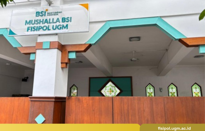 Yogyakarta, 14 April 2026—Fakultas Ilmu Sosial dan Ilmu Politik Universitas Gadjah Mada (FISIPOL UGM) menyediakan musala untuk memenuhi kebutuhan ibadah sivitas kampus. Mushola BSI Fisipol, diresmikan pada tahun 2015 lalu melalui kerja sama fakultas dengan perbankan syariah, berfungsi sebagai tempat pelaksanaan shalat di sela-sela perkuliahan.