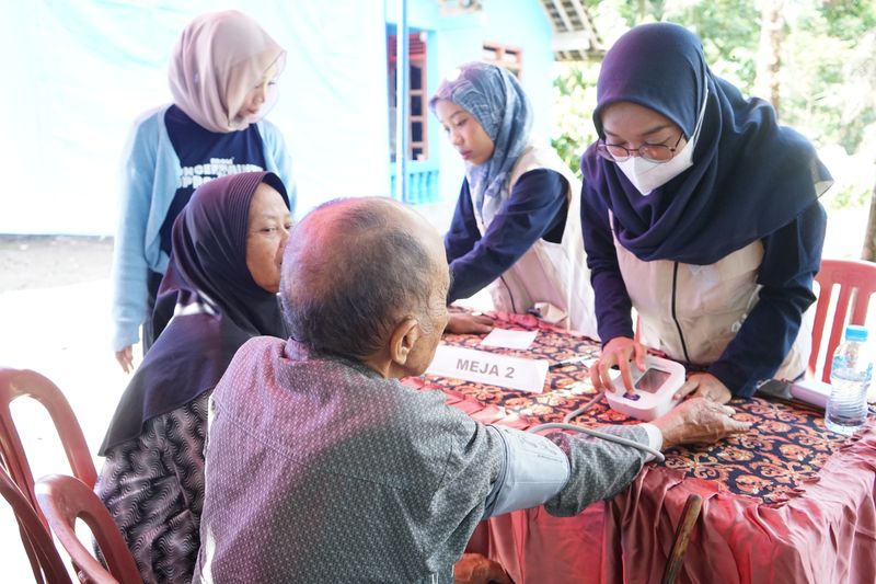 Sesi diawali dengan pemeriksaan tekanan darah, dilanjutkan dengan pengukuran tinggi badan dan berat badan, serta pengecekan tingkat kadar gula darah, asam urat, dan kolesterol. Kemudian diakhiri dengan sesi konsultasi bersama dokter yang bertugas. Para dokter turut memberikan edukasi mengenai pola hidup sehat, mulai dari pentingnya gizi seimbang hingga anjuran olahraga teratur sebagai upaya pencegahan penyakit degeneratif. Beberapa warga pun direkomendasikan untuk melakukan pemeriksaan lanjutan di rumah sakit atau puskesmas terdekat apabila ditemukan gejala-gejala yang memerlukan bantuan medis lebih jauh.